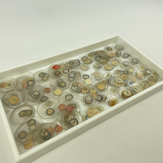 Apr Lot 12- Assortment of 50 Labeled Pocket Watch Glass Crystals
