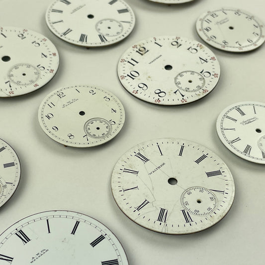 Apr Lot 26- Waltham Assortment of 12 Enamel Pocket Watch Dials