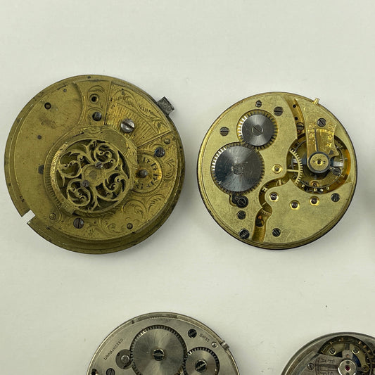 Apr Lot 125-Swiss & English Assortment of 7 Gilt & Nickel Pocket Watch Movements