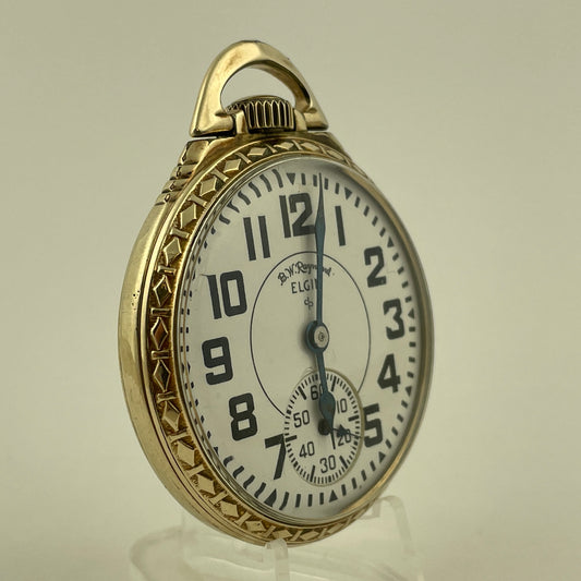 Elgin 16 Size “B. W. RAYMOND MODEL” Signed Pocket Watch YGF Case
