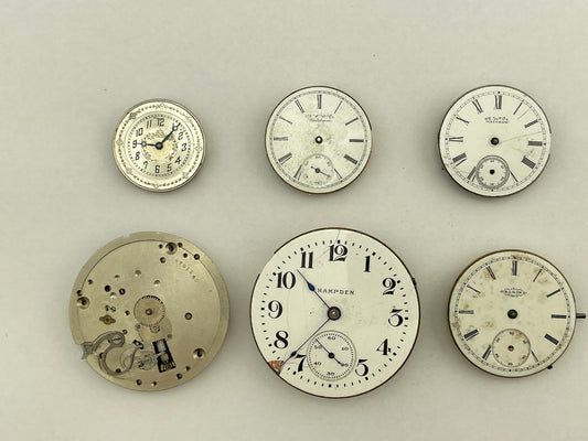 Elgin, Waltham & Hampden 6/0, O, 6, 16 & 18 Size Pocket Watch Movements