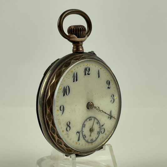 Feb Lot 79- Swiss Coin Silver w/ gold bezels Pocket Watch
