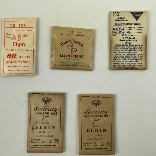 Feb Lot 92- Elgin 16 Size No. 817 & 6164 Pocket Watch Mainsprings