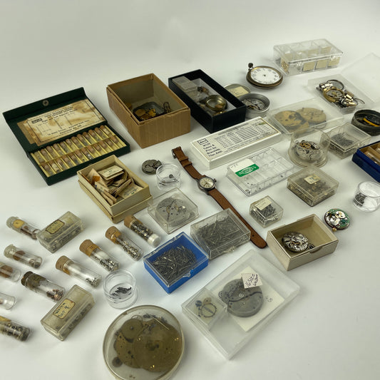 Lot 52- Assortment of Pocket Watch Movements, Wristwatch Stems, Crowns, etc.