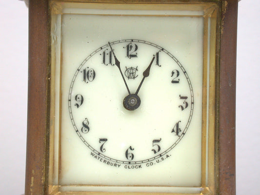 Lot 9- Waterbury 30-Hour Time & Strike, Brass & Glass Carriage Clock