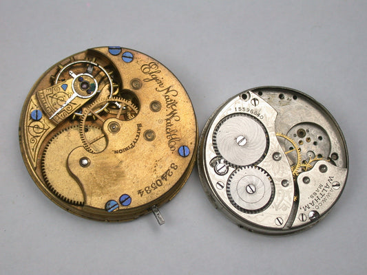 Lot 19- Hampden, Illinois, Waltham & Elgin Pocket Watch Movements