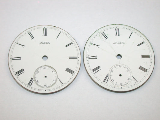 Lot 31- Waltham 10, 12, 16 & 18 Size Pocket Watch Enamel Dials