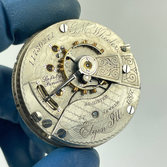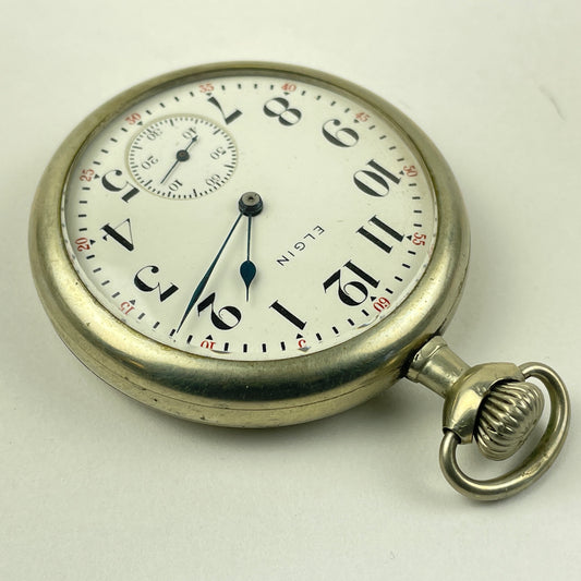 Lot 113- Elgin 18 Size 15 Jewel Nickel Open Face Pocket Watch Movement