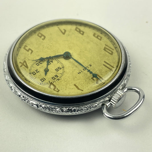 Lot 101- Elgin 12 Size Black Enamel Art Deco Pocket Watch