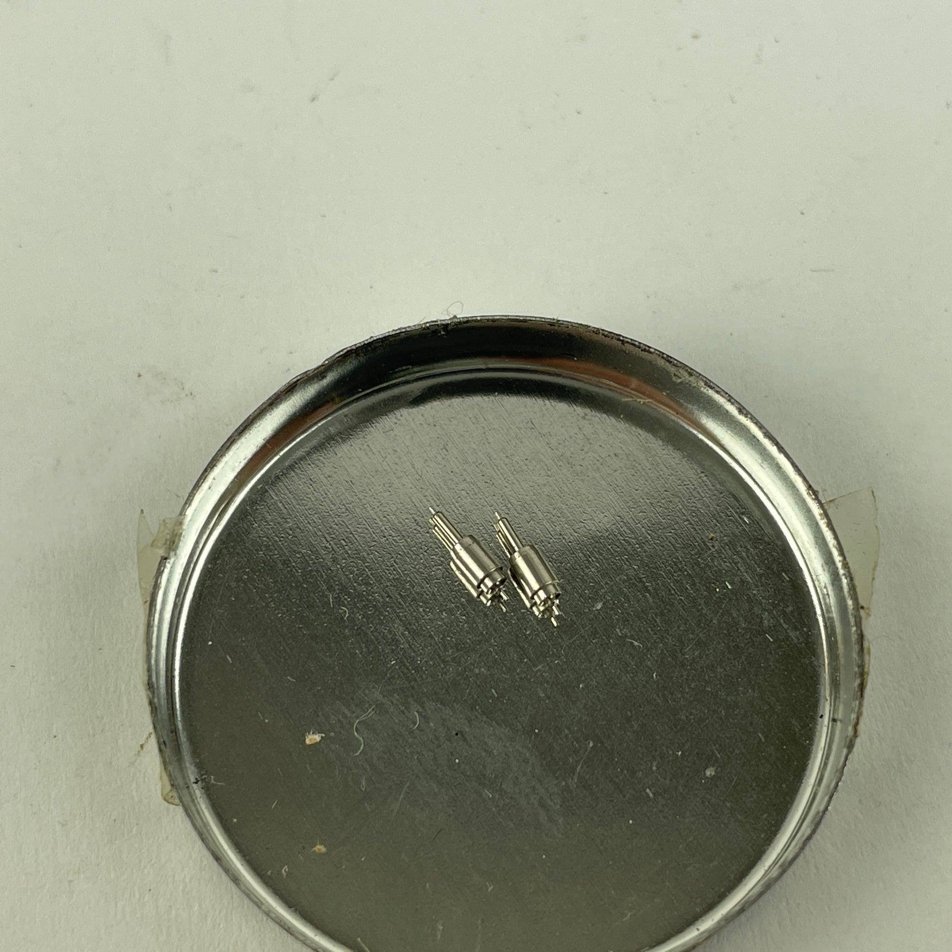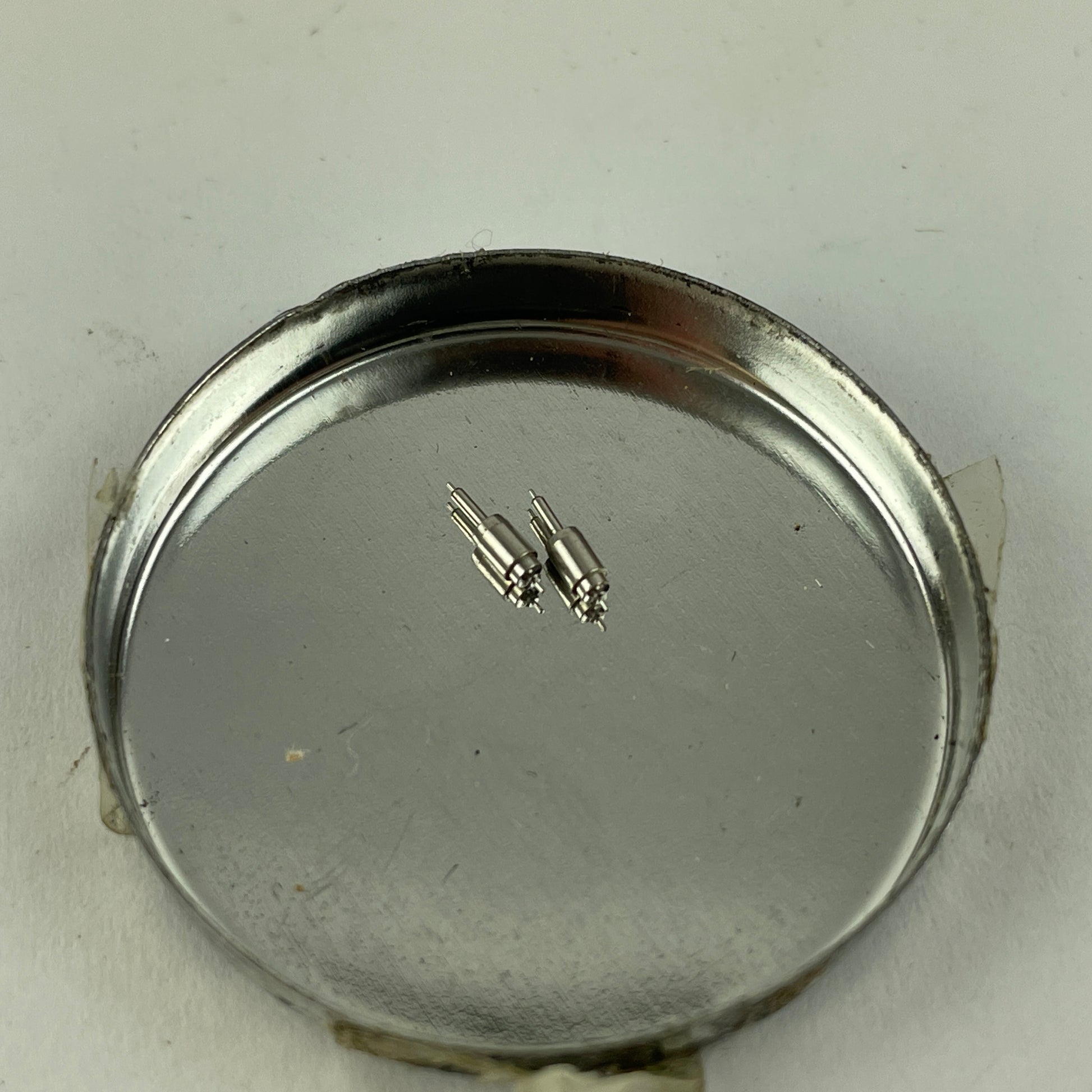 This lot contains a nice clean pair of two (2) genuine factory Waltham 18 Size Model 1857 Factory No. 279 Pocket Watch Balance Staffs. These are new old stock very difficult to find model 1857 balance staffs.