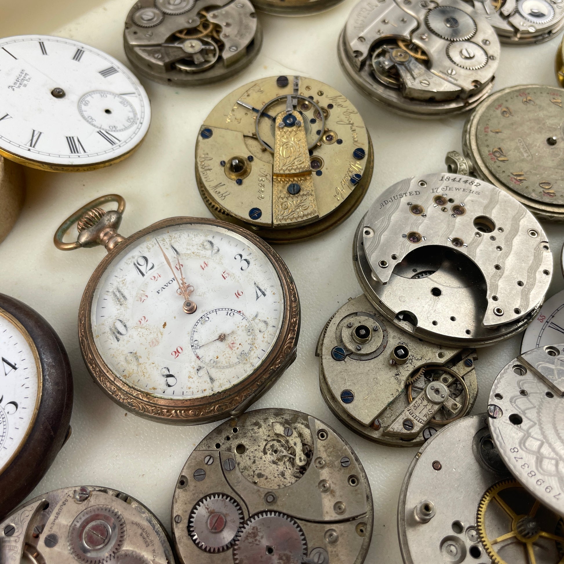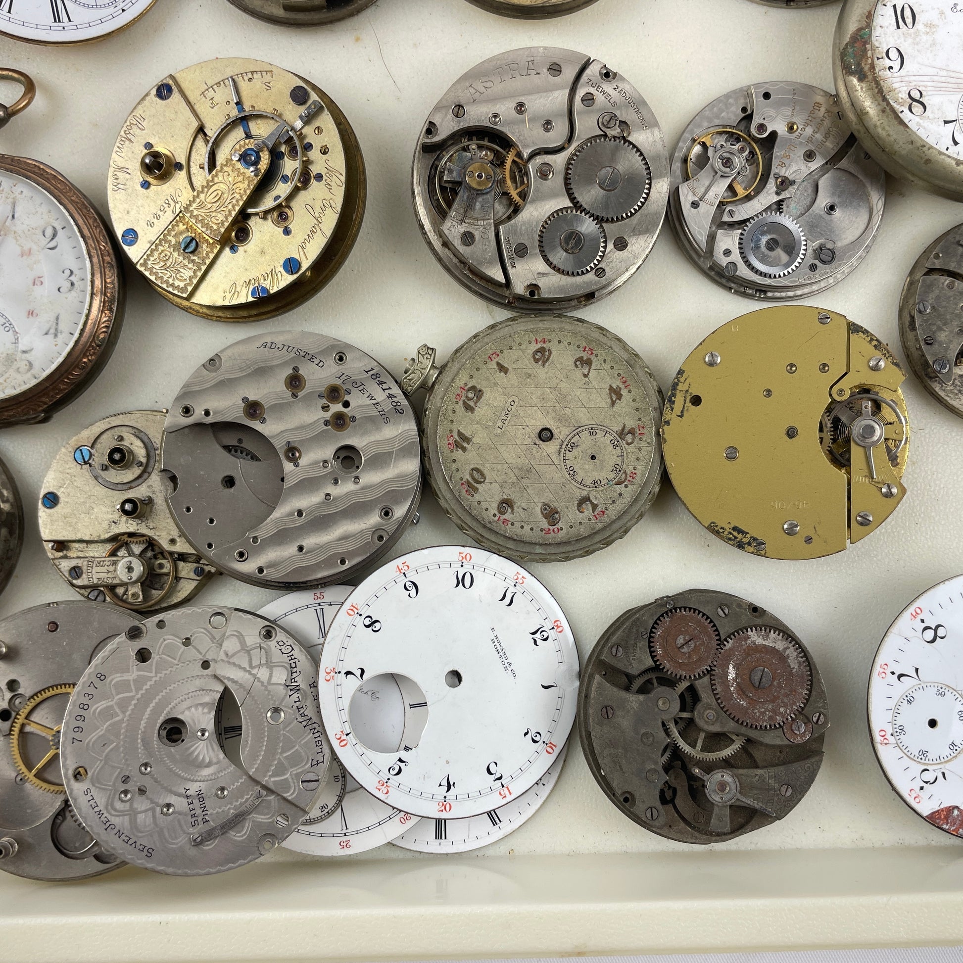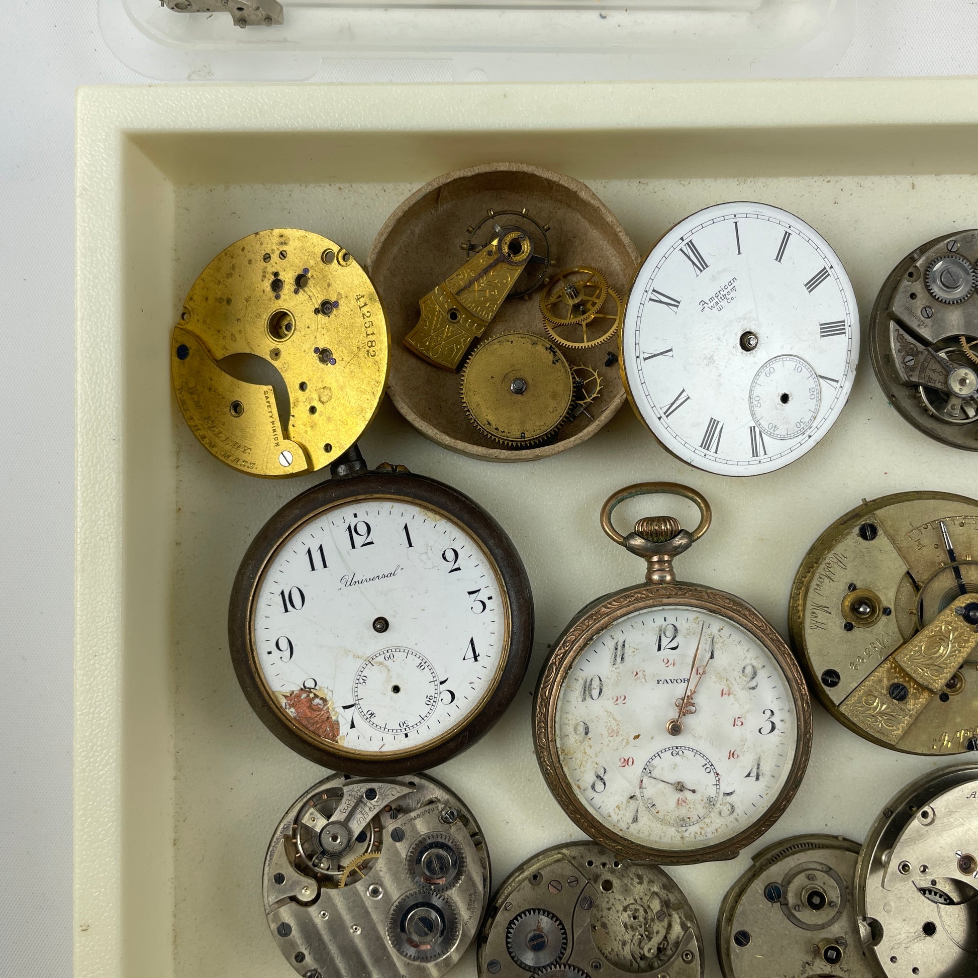 This is a tray full of vintage American & Swiss partial parts movements. All will be sold as is and non-running for the wealth of parts they contain.